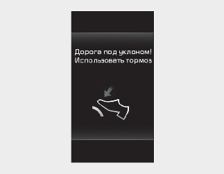 Данное предупреждение появляется в случае, когда автомобиль медленно движется под уклон, а система обнаруживает, что педаль тормоза не выжата.