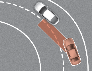 Вспомогательная система предотвращения столкновения в слепой зоне может работать некорректно при движении по извилистой дороге. Система предотвращения столкновения в слепой зоне не всегда обнаруживает транспортные средства в той же полосе.