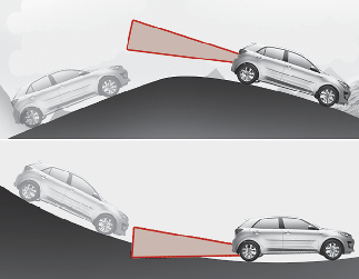 Вспомогательная система предотвращения столкновения в слепой зоне может работать некорректно при движении по склонам. Функция может не обнаружить автомобиль на соседней полосе или неправильно обнаружить землю или здание.