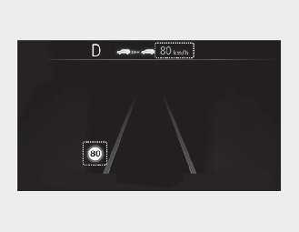 Если не удается распознать ограничение скорости на дорожном знаке, появится изображение «---». См. раздел Подробнеепри возникновении трудностей с распознаванием дорожных знаков.