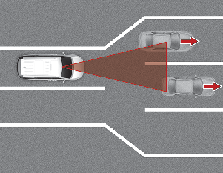 Если впереди идущее транспортное средство выполняет резкий поворот, например поворот налево, направо, разворот и т. п., функция контроля отъезда впереди стоящего автомобиля может работать неправильно.