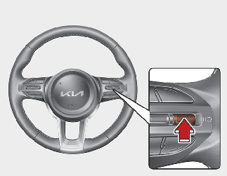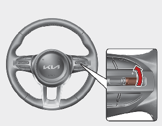 Нажмите и сразу же отпустите кнопку (-). Установленная скорость будет уменьшаться с шагом в 1 км/ч. Чтобы быстро уменьшить установленную скорость, нажмите и удерживайте переключатель th (-). Заданная скорость будет уменьшаться с шагом 10. Если единицей измерения скорости на приборной панели является миля в час, то скорость будет уменьшаться кратно 5.