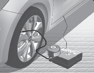 После включения зажигания или перевода кнопки «Запуск/остановка двигателя» в положение «Вкл.»: Включите компрессор и подождите в течение 3 минут, чтобы герметик распределился. После заливки герметика величина давления в шине значения не имеет.