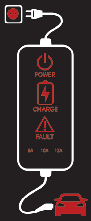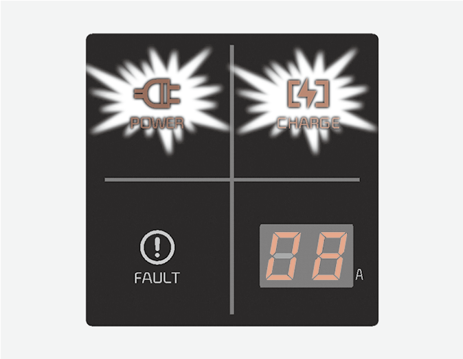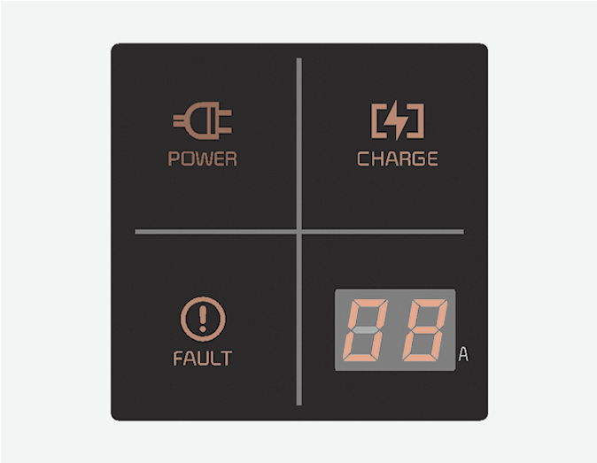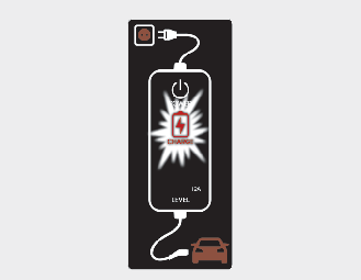 Зареждащият ток се променя (3 ниво), когато бутонът (1) се натисне за 1 секунда, докато зарядното устройство е свързано към електрически контакт, но не и към автомобила. МАКС 12A: 12A, 10A, 8A МАКС 10A: 10A, 8A, 6A МАКС 8A: 8A, 7A, 6A |