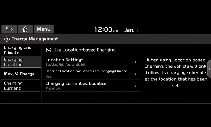 Ако бъде избрано зареждане въз основа на местоположението, планираното зареждане и целевата температура ще се активират на зададеното от водача местоположение.