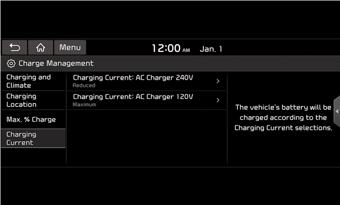 Целевото ниво на зареждане на батерията може да се избере, когато се извършва зареждане с AC или DC зарядно устройство.
