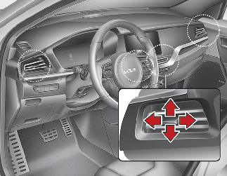 Също така можете да коригирате посоката на въздушния поток от тези вентилационни отвори, като използват лоста за управление на отворите, както е показано.