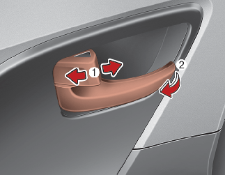 Ако дръпнете дръжката от вътрешната страна на вратата на водача (или на пътника отпред), когато бутонът за заключване на вратата е в заключено положение, бутонът ще се отключи и вратата ще се отвори. (Ако е налично)