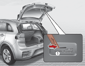 Автомобилът Ви е оборудван с авариен лост за освобождаване на вратата на багажника, разположен в долната част на багажника. Когато някой случайно бъде затворено в багажното отделение. Багажникът може да се отвори по следния начин: