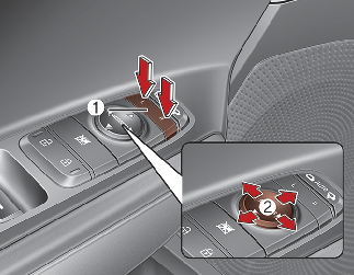 Използвайте четирипосочния превключвател (2), за да регулирате избраното огледало нагоре, надолу, наляво или надясно.