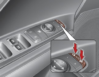 Външното огледало за обратно виждане може да се прибере или отвори чрез натискане на бутона, когато бутон POWER (захранване) е в позиция ON, както по-долу.