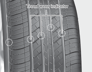 Ако гумата е износена равномерно, индикаторът за износване ще се появи като непрекъсната лента през грайфера. Това показва, че има по-малко от 1,6 mm (1/16 in.) от грайфера. Сменете гумата, когато това се случи.