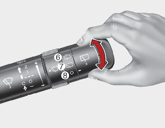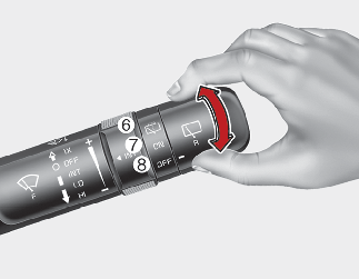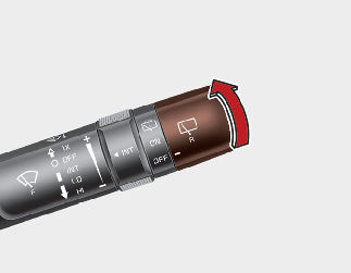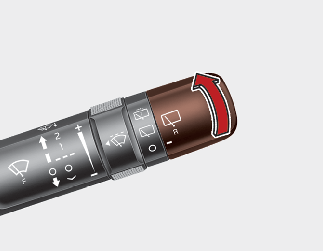 Empurre a alavanca do limpa-para-brisas para cima para pulverizar líquido de limpeza na janela traseira e executar o curso dos limpa-para-brisas traseiros em 1 a 3 ciclos.
