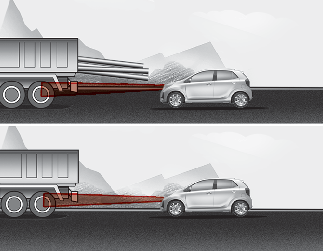 Além disso, a velocidade do veículo pode diminuir rapidamente quando um veículo à frente é detetado repentinamente.