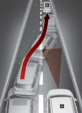 [A]: O seu veículo, [B]: Veículo a mudar de faixa