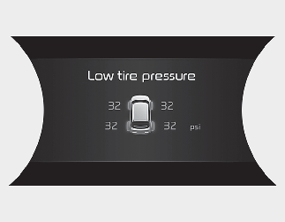 This warning message is displayed if the tire pressure is low. The corresponding tire on the vehicle will be illuminated.