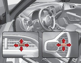 The instrument panel vent air flow can be directed up/down or left/right using the vent adjustment lever.
