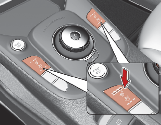 You may manually press the button to increase the seat temperature. However, it soon returns to the automatic mode again. When pressing the switch for more than 1.5 seconds with the seat warmer operating, the seat warmer will turn OFF. The seat warmer defaults to the OFF position whenever the START/STOP button is in the ON position.