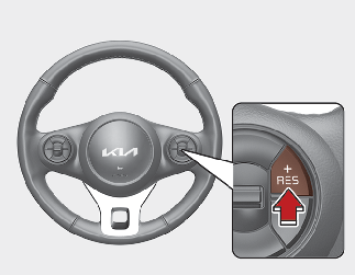 Press the RES+ button, and release it immediately. The cruising speed will increase by 1.0 mph (1.0 km/h) each time you Press the RES+ button in this manner.
