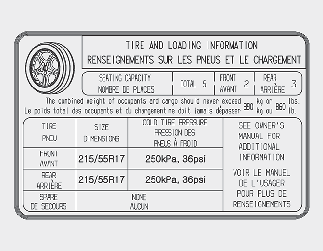 The label located on the driver's door sill gives the original tire size, cold tire pressures recommended for your vehicle, the number of people that can be in your vehicle and vehicle capacity weight.