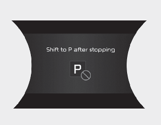 The message appears on the LCD display when the gear is shifted to P (Park) while the vehicle is moving.