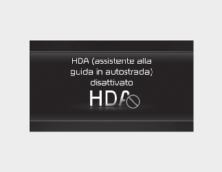 Se il conducente non ha ancora le mani sul volante dopo l'avviso, appare il messaggio di avviso "Sistema di Assistenza alla guida in autostrada (HDA) disattivato".
