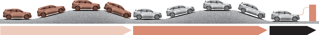 Cuando funciona en el modo de vehículo eléctrico, se conduce utilizando únicamente el motor eléctrico durante cierta distancia hasta que se agota la batería híbrida. La distancia de conducción en modo EV depende del estilo de conducción del cliente y de las condiciones de la carretera. Las maniobras de conducción agresiva pueden, en ocasiones, hacer funcionar temporalmente el motor.