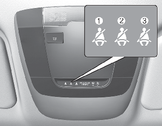 Independientemente de que el cinturón de seguridad del conductor esté abrochado, el testigo de advertencia se encenderá durante aproximadamente 3 ~ 6 segundos cada vez que coloque el interruptor de encendido o el botón ENGINE START/STOP (inicio/parada del motor) en ON (activado). Si el cinturón de seguridad del conductor no está abrochado, la alarma de advertencia sonará durante unos 6 segundos y la luz de advertencia permanecerá encendida hasta que el conductor se haya abrochado el cinturón de seguridad.