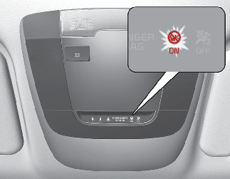 Si el interruptor ON/OFF del airbag delantero del acompañante está averiado, el indicador OFF del airbag delantero del acompañante no se encenderá (el indicador ON del airbag delantero del acompañante se enciende) y el airbag delantero del acompañante se inflará en un choque frontal incluso si el interruptor ON/OFF del airbag delantero del acompañante se ajusta a la posición OFF.