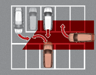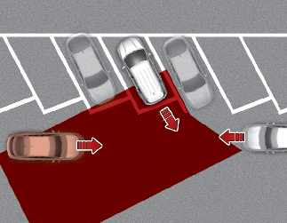 La asistencia de prevención de colisión con tráfico cruzado trasero podría detectar vehículos que están estacionando o saliendo cerca de su vehículo (por ejemplo, un vehículo saliendo de una plaza contigua, un vehículo estacionando o saliendo cerca del área trasera, un vehículo aproximándose a su vehículo haciendo un giro, etc.). Si esto ocurre, la función podría avisar al conductor de forma innecesaria y controlar el freno.