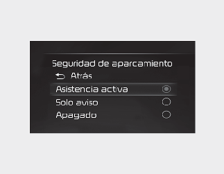 Ajustes de la asistencia de prevención de colisión al estacionar marcha atrás
