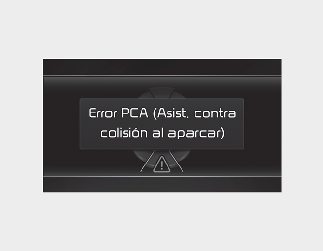 Cuando la asistencia de prevención de colisión al estacionar marcha atrás u otras funciones relacionadas no se accionen correctamente, aparecerá el mensaje de advertencia "Compruebe Asistencia de prevención de colisión al estacionar marcha atrás" en el tablero y la función se desactivará automáticamente. Lleve el vehículo a un taller profesional para que lo inspeccionen. Kia recomienda visitar un centro de servicio/distribuidor Kia autorizado.