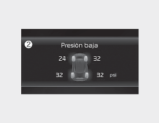 La presión de los neumáticos se muestra 1 ~ 2 minutos después de iniciar la conducción.