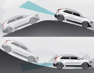 Aklās zonas sadursmes novēršanas palīgsistēma var nedarboties pareizi, braucot pa nogāzi. Sistēma var nespēt konstatēt automobili blakus joslā vai var nepareizi atpazīt zemi vai būvi.