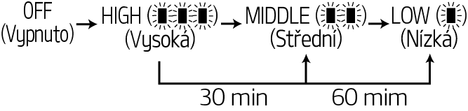 Každým stiskem páček/spínače se nastavení teploty sedadla mění následujícím způsobem:
