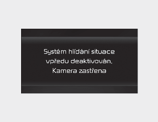 je vypnutý, kamera je zakrytá) nebo „Forward Safety system disabled Radar blocked“ (Systém bezpečí před vozidlem je vypnutý,