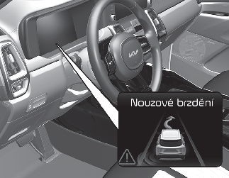 Při nouzovém brzdění se aktivuje asistence, která pomáhá zabránit srážce s vozidlem v mrtvém úhlu.