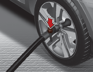 Zapněte kompresor a nechte ho běžet přibližně 5~7 minut pro naplnění těsnicího prostředku náležitým tlakem. (Viz Další podrobnosti). Tlak v pneumatice po naplnění těsnicího prostředku není důležitý a lze jej zkontrolovat a upravit později. Dbejte, aby nedošlo k přílišnému nahuštění pneumatiky a při huštění se k ni nepřibližujte. Z bezpečnostních důvodů nepoužívejte soupravu pro opravu pneumatiky při poškození pneumatiky i ráfku.