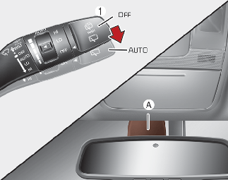 El sensor de lluvia (A) situado en el extremo superior del parabrisas detecta la cantidad de lluvia y acciona el ciclo de barrido a un intervalo adecuado. Cuanto más llueve, más rápido funciona el limpiaparabrisas. Cuando para de llover, el limpiaparabrisas se detiene.