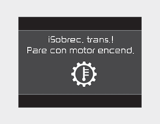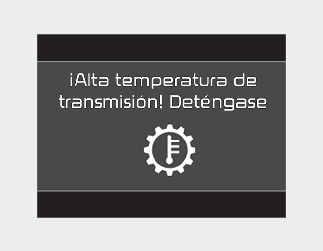 Si se sigue conduciendo el vehículo y las temperaturas del embrague alcanzan el límite máximo de la temperatura, se mostrará la advertencia "Transmission Hot! Park with engine on" (¡Sobrec. trans.! Pare con motor encend.). Cuando esto ocurre, el embrague se desactiva hasta que se enfría de nuevo a una temperatura normal.