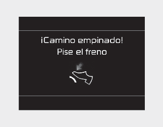 Si mantiene el vehículo en una cuesta accionando el pedal del acelerador o avanzando lentamente con el pedal del freno desacoplado, el embrague y la transmisión se podrían sobrecalentar lo que podría provocar daños en los mismos. En este momento, aparecerá un mensaje de advertencia en la pantalla LCD.