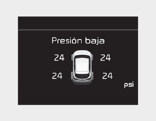 En invierno o en temperaturas frías, el avisador de presión baja de los neumáticos podría iluminarse si la presión de los neumáticos se ajusta a la presión recomendada para los neumáticos en temperaturas cálidas. Esto no significa que el TPMS esté averiado, ya que los descensos de temperatura provocan una bajada de la presión de los neumáticos.