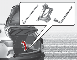 El gato, la palanca del gato y la llave para las tuercas de las ruedas se encuentran en el maletero.