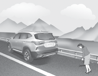 Para impedir que el vehículo se mueva mientras cambia la rueda, mantenga siempre el freno de estacionamiento totalmente accionado y bloquee las ruedas opuestas diagonalmente a la rueda que se va a cambiar.