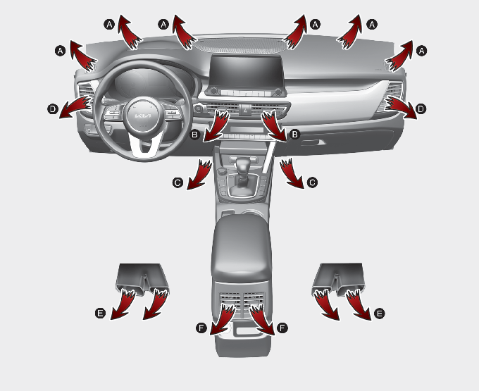 With the outside (fresh) air position selected, air enters the vehicle from outside and is heated or cooled according to the function selected.