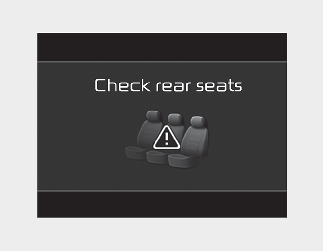 When you open the front door after opening and closing the rear door and turning off the engine, the "Check rear seats" warning message appears on the cluster.