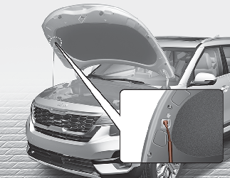 Open the hood after turning off the engine on a flat surface, shifting the shift lever to the P (Park) position for Automatic Transmission/Dual Clutch Transmission/Intelligent Variable Transmission and to the 1st (First) gear or R (Reverse) for Manual Transmission, and setting the parking brake.