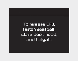 If there is a problem with the vehicle, a warning may sound once and a message may appear. If the above situation occurs, depress the brake pedal and release EPB by pressing the EPB switch.