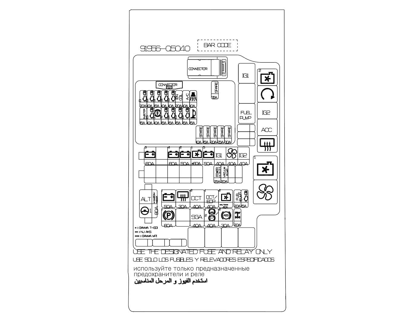 PCB Block (Fuse Name - ECU5, ABS3, TCU2, SENSOR4) |
