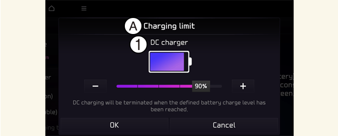 The target battery charge level can be selected when charged with AC charger or DC charger.
